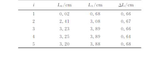 由表1可得:弹簧伸长量的平均值ΔL=0.65 cm,代入式(3),计算可得蒸馏水的表面张力系数α=(68.08±2.72)×10?3N/m。15℃时水的表面张力系数标准值为73.5×10?3N/m。因此,该实验结果的相对偏差E_r=5.98%。