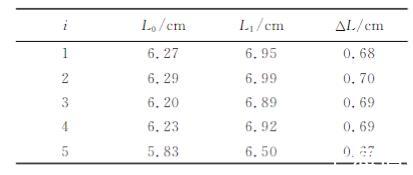 4)记录水膜刚好被拉破时标尺的读数L?,计算得到弹簧的伸长量ΔL,实验结果如表1所示。