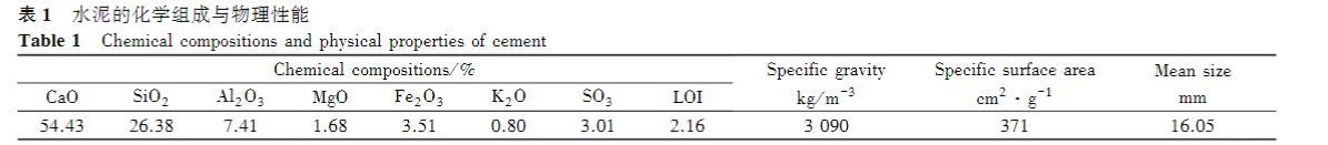 表1水泥的化学组成与物理性能
