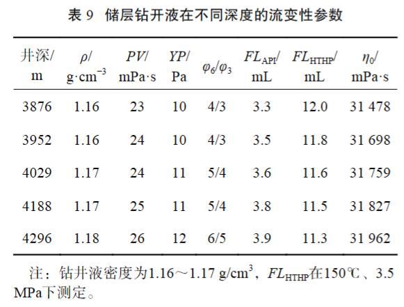 表8抗超高温低渗透钻开液的储层?;ば阅?
